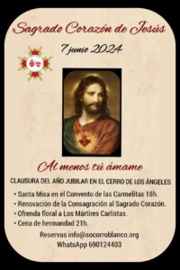 Desde Socorro Blanco de Castilla, os convocamos a todos los correligionarios carlistas y simpatizantes a la Celebración de la Clausura del Año Jubilar del Sagrado Corazón.